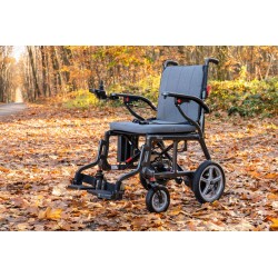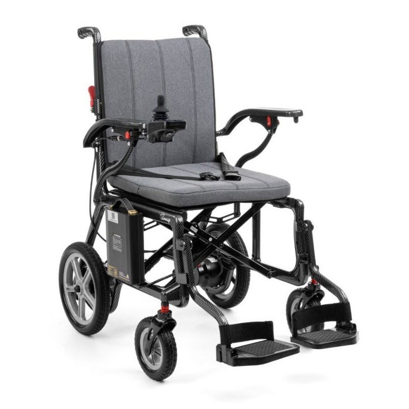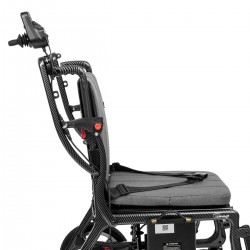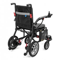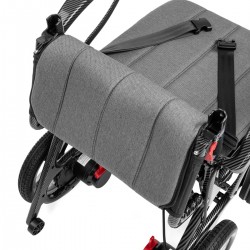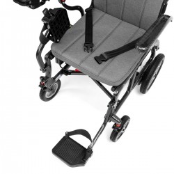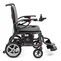 Podnoszone podłokietniki i podnóżek ułatwiają wsiadanie i wysiadanie. Kieszeń z tyłu oparcia pomieści najważniejsze drobiazgi. Akumulator można łatwo wyjąć i naładować — również poza wózkiem.